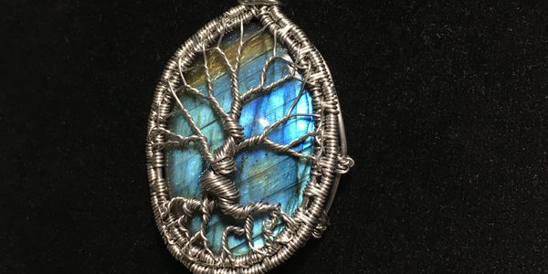 I use various types of wire, chains, and beads to create trees that are then secured to various vessels, including rocks, crystals, ceramic pots, wood, and more. The trees are created by twisting the wire, and they are typically secured with UV resin.